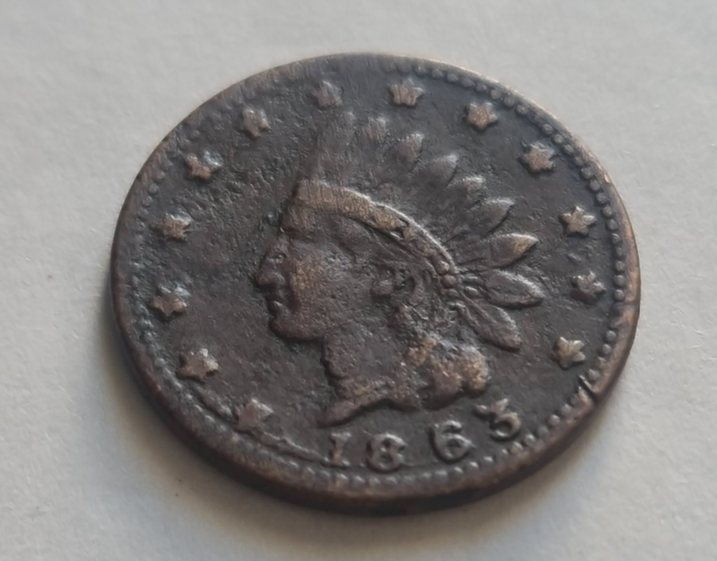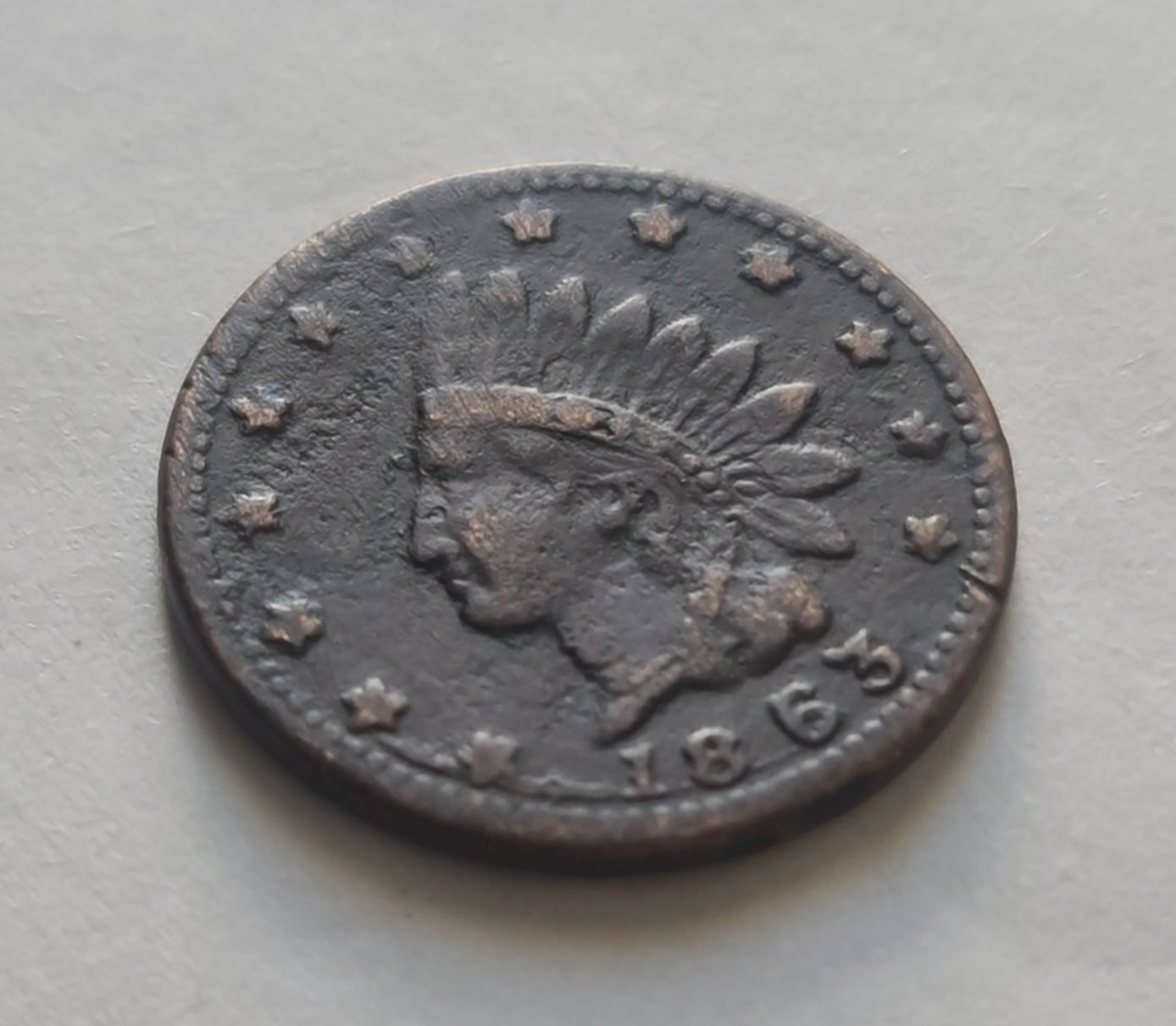 This token shows natural circulation wear consistent with its age. Surface tone and patina are original. Please review all images carefully to evaluate the condition.